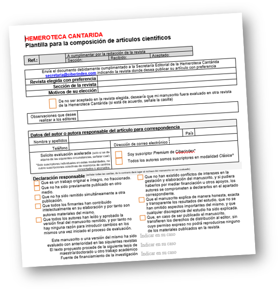 La Plantilla de manuscritos Cantárida es el formulario oficial que los autores utilizan para enviar un manuscrito a las revistas propias de la Fundación Index